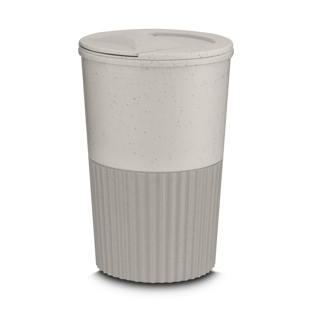 Copo plástico  produzido com fibra de trigo e plástico, com capacidade de 400ml e tampa rosqueável.