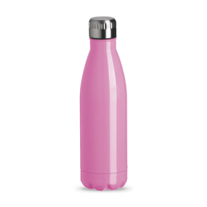 Garrafa em aço inox com capacidade de até 750 ml. Tampa rosqueável e anel de silicone para vedação. Design com frisos na tampa.