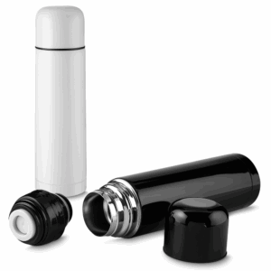 Garrafa térmica em aço inox com parede dupla isolada a vácuo, com capacidade de até 500 ml. Tampa rosqueável com anel de silicone que pode ser utilizada como copo com capacidade de até 100ml. Possui botão de acionamento para melhor segurança.