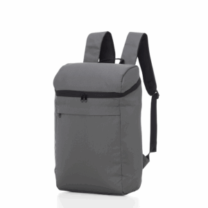 Mochila térmica em tecido poliéster 600d RPET e interior costurado em PEVA. Capacidade de 16 litros. Com bolso frontal de zíper e alça de ombro acolchoada