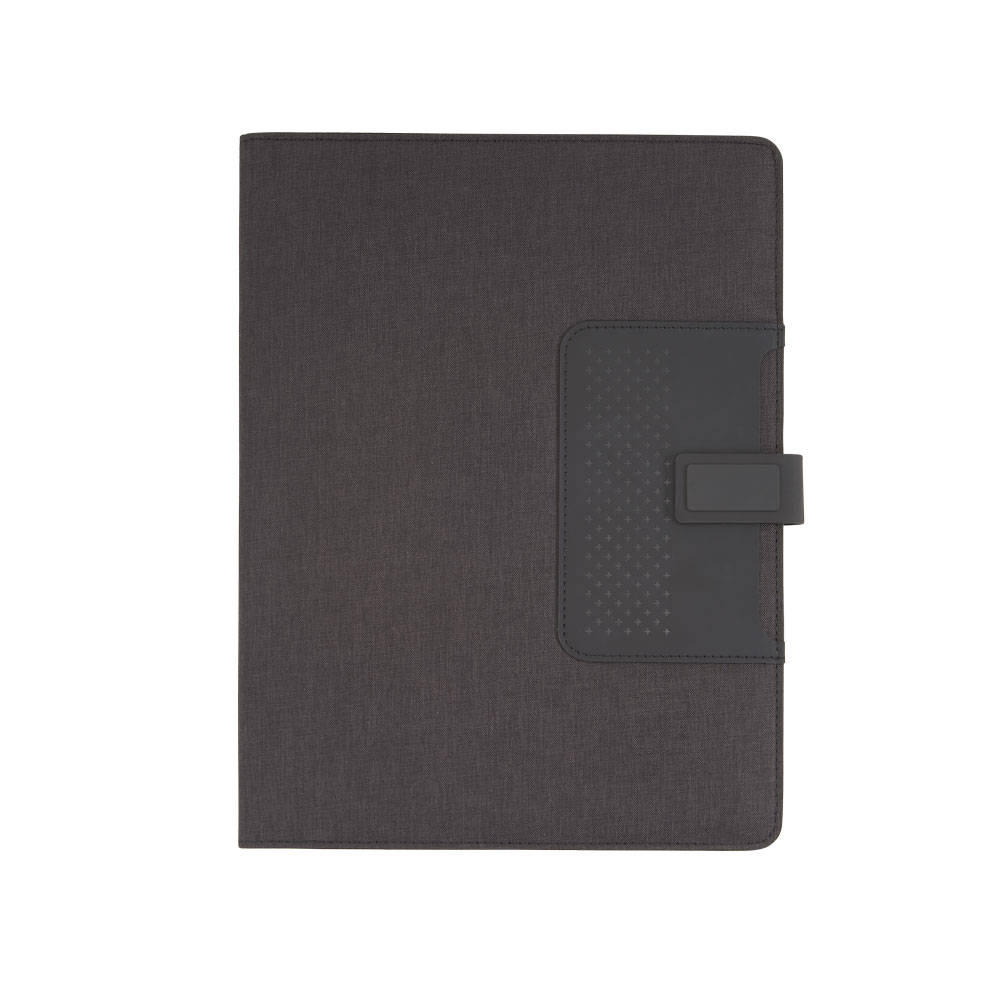 Pasta Executiva Almofadada com caderno de 20 folhas A4, Bolso na capa 8x12cm, Bolso interno para Cartões, Telefone e Documentos, Fechadura Magnética.